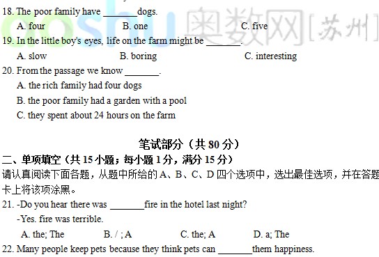 苏州吴中区2011—2012学年第二学期期末调研测试 初一英语(2)