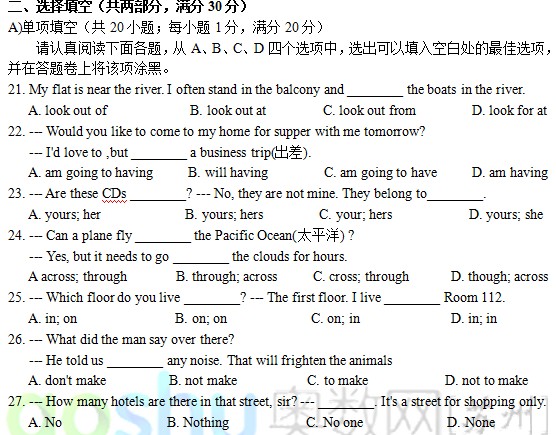苏州相城区2011-2012学年度第二学期期末试卷 初一英语(2)