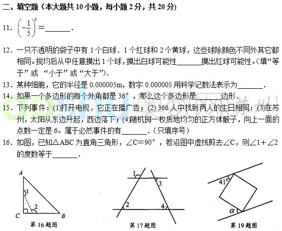 苏州园区2011~2012学年第二学期期末教学调研 初一数学(2)