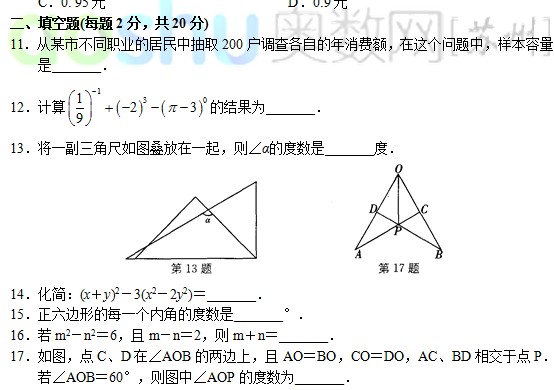 苏州市2011—2012学年第二学期期末复习卷(二)初一数学(2)