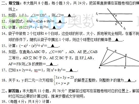 相城区2011-2012学年度第二学期期末考试试卷 初一数学(2)