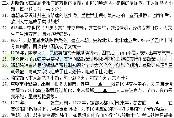 高新区2011-2012学年第二学期期末试题 初一历史(2)