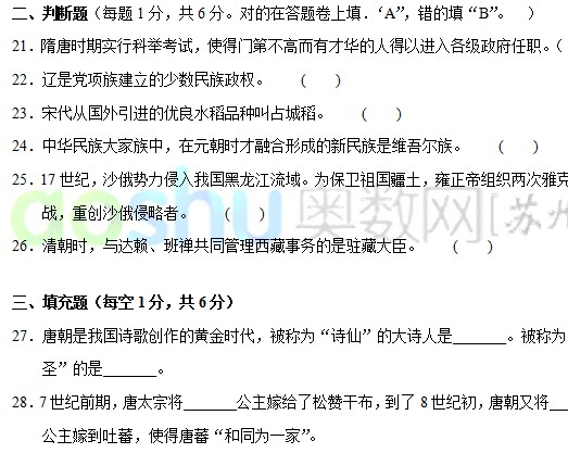 吴中区2011—2012学年第二学期期末调研测试 初一历史(2)