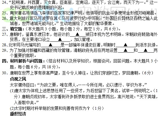 相城区2011-2012学年度第二学期期末考试试卷 初一历史(2)