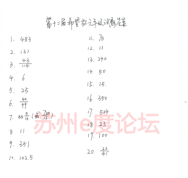 2014年希望杯初赛六年级试题及详解(2) 苏州奥数网 2014-03-17 13:56:13 点击下载:第十二届“希望杯”初赛小学组六年级答案及解析 编辑推荐:2014年第十二届“希望杯”小学组试题及详解首发 首页 上一页 下一页 尾页