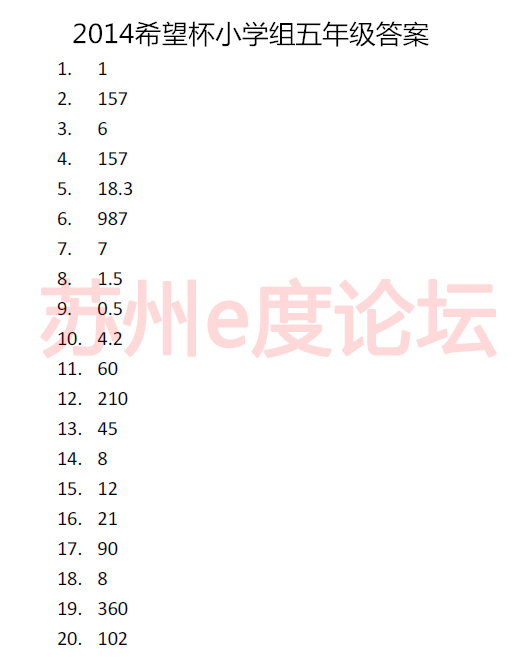 2014年希望杯初赛五年级试题及详解(2) 苏州奥数网 2014-03-17 14:01:38 点击下载:第十二届“希望杯”初赛小学组五年级答案及解析 编辑推荐:2014年第十二届“希望杯”小学组试题及详解首发 首页 上一页 下一页 尾页