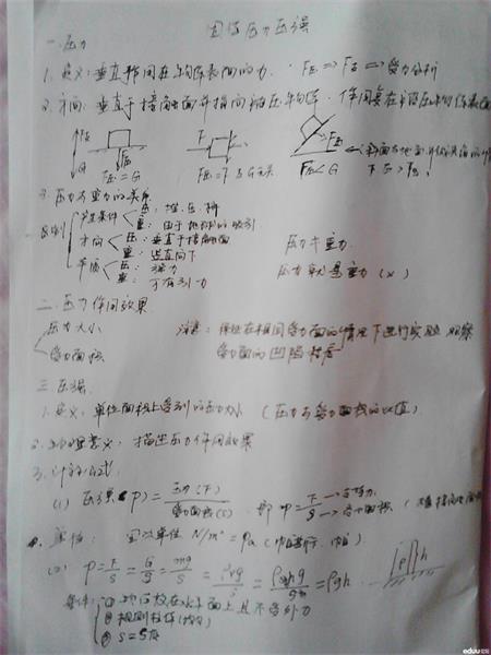后附学而思物理笔记“压力和压强”(PS:这次没有时间整理,就是随堂记的,有点乱)
