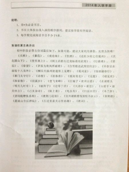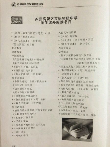 苏州新区实验初级中学新生手册(推荐读物)
