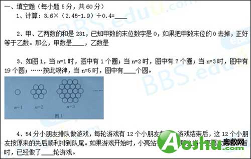 下载试题请点击>>2012年第十届希望杯五年级第二试试题
