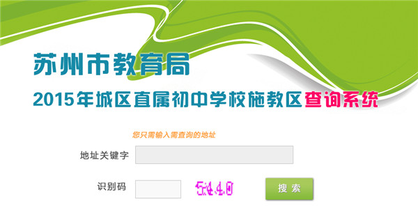 5月15日,2015年苏州市教育局直属初中施教区公布,市民可登陆苏州市教育局官网查询系统查询(http://222.92.102.146/search-new.html)