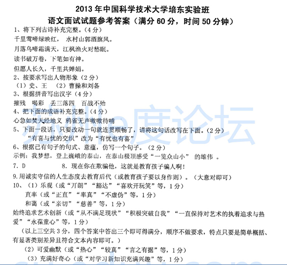 2013年中国科学技术大学培东实验班语文面试试题(2) 苏州奥数网 2015-06-04 18:32:58 >>>点击下载:2013年中国科学技术大学培东实验班语文面试试题答案(完整版) 相关阅读推荐: 没有蓝条能不能考培东和伟长? 家长:苏州三中慧成班电话面试通知 家长:谁收到振华5+4招生说明会入场券? 2015小升初征文:小升初随感 首页 上一页 下一页 尾页