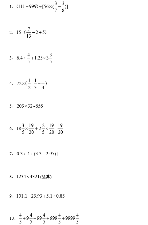 计算,在学习的每个阶段都是基础和重点,每学期都很重视小朋友们计算能力的提升。针对六年级的小朋友们可能出现的问题,老师们为大家奉上了这份计算练习大餐,帮助大家提升计算水平。