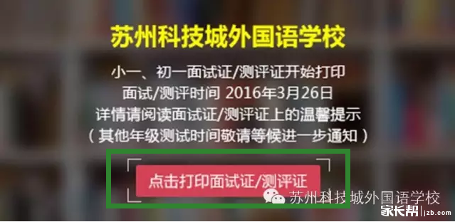 (1)登陆苏州科技城外国语学校门户网站(www.ssfls.com.cn),点击首页“打印面试证/测评证”按钮