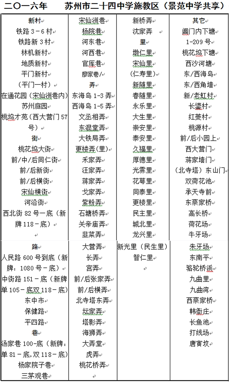 苏州市第二十四中学2016年施教区(景范中学共享)公示如下: