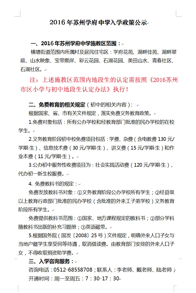 下面分享苏州2016学府中学入学政策&施教区给大家。