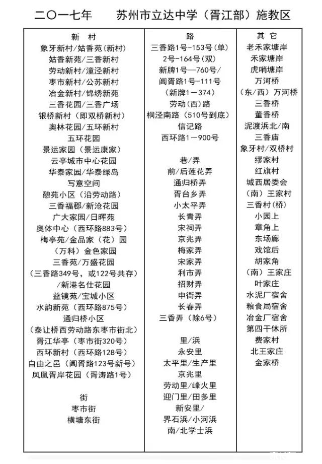 2017年苏州市立达中学(胥江部)入学政策及施教区公示(2)