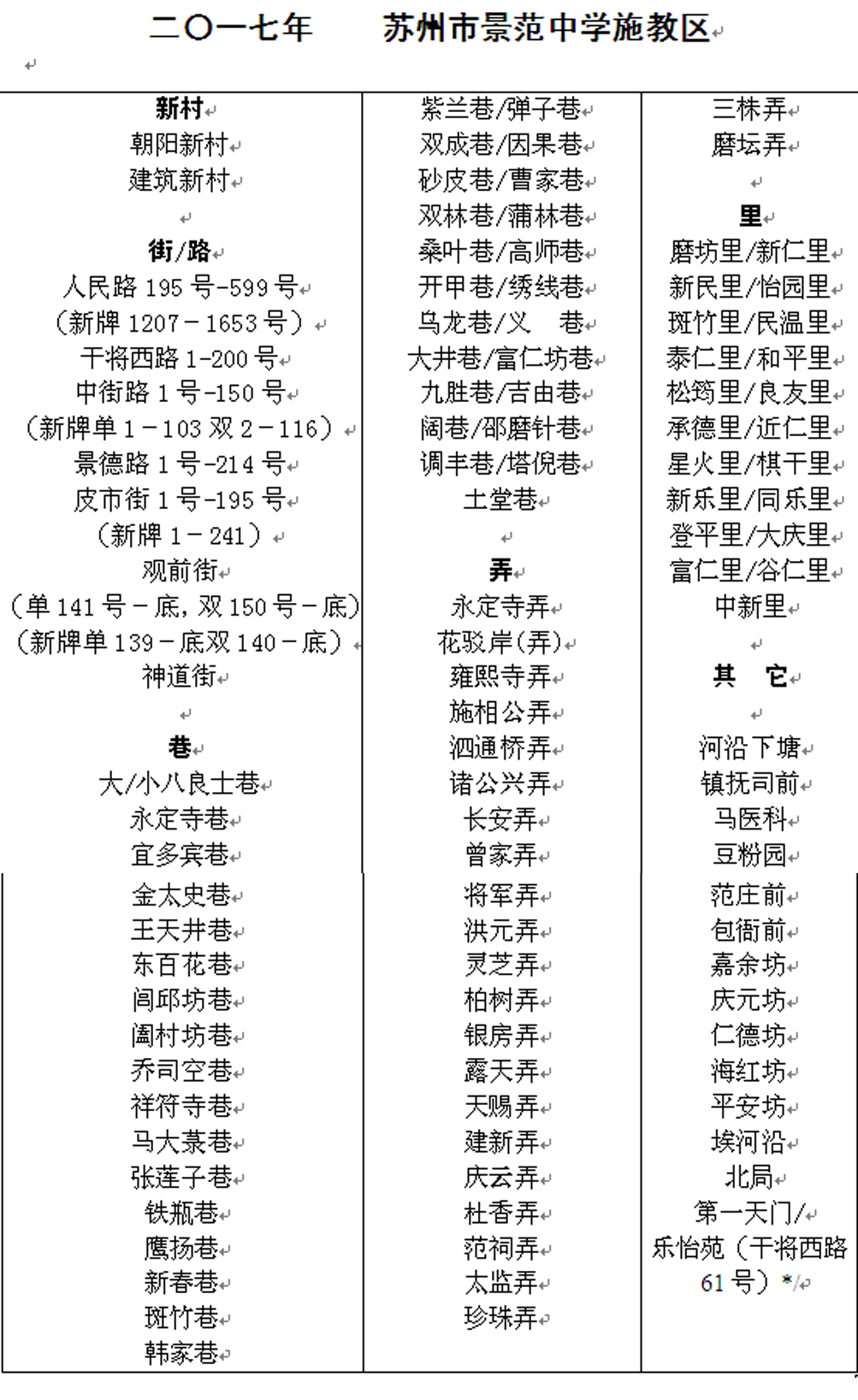 2017苏州景范中学校施教区范围公示