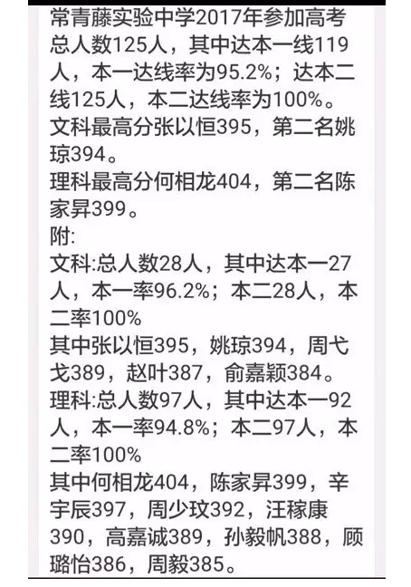 2017年张家港常青藤实验中学高考成绩