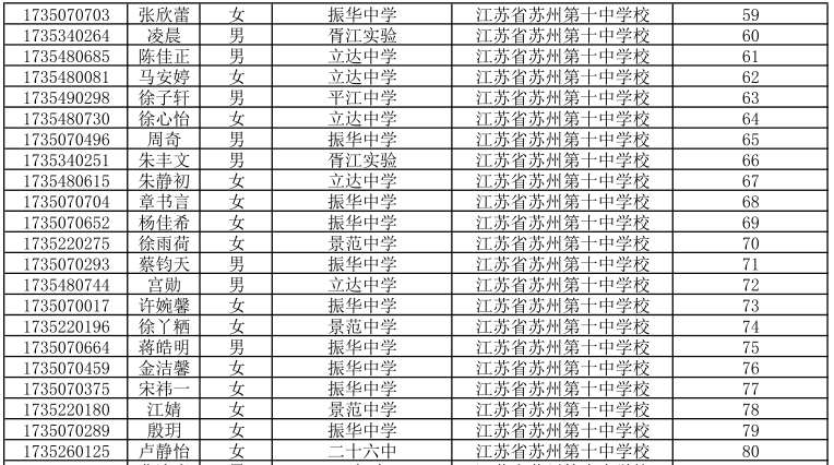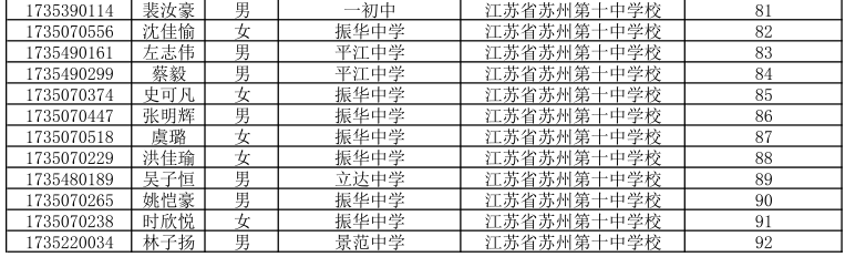 2017年江苏省第十中学长达班预录取名单公布(2)