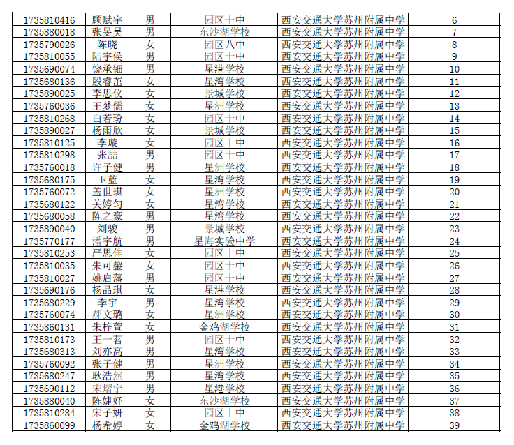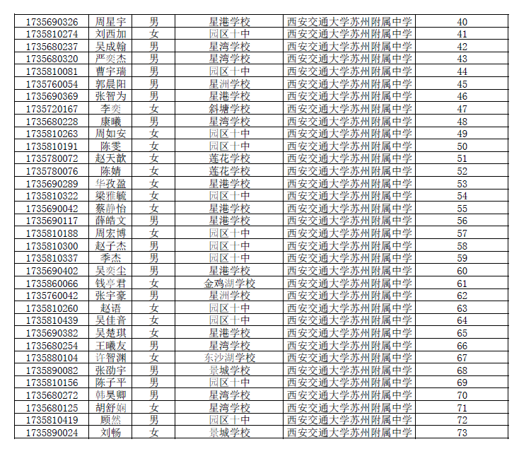 2017西交大苏州附中自主招生预录取名单
