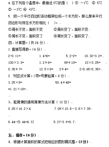 2018苏州五年级上数学期末试卷4(3)
