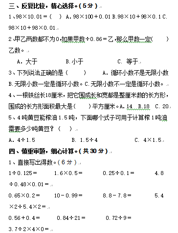 2018苏州五年级上数学期末试卷7(4)
