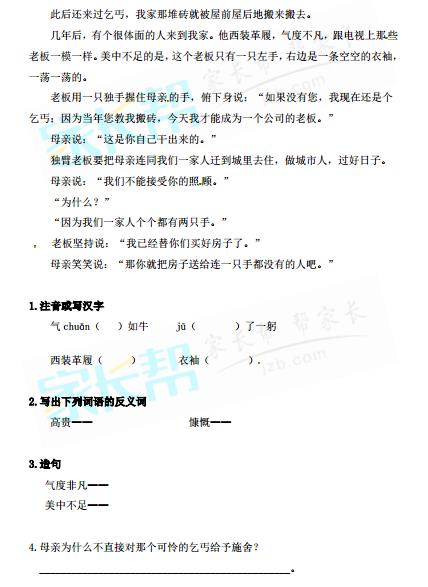 2018苏州六年级阅读理解训练试卷(2)(2)