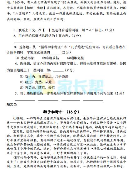 2015-2016苏教版六年级语文上册期末试卷(3)
