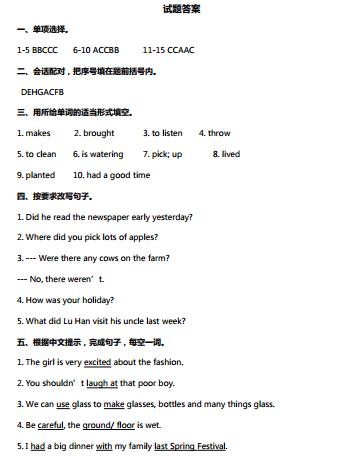 2018苏州六年级英语上册期末试卷及答案(5)