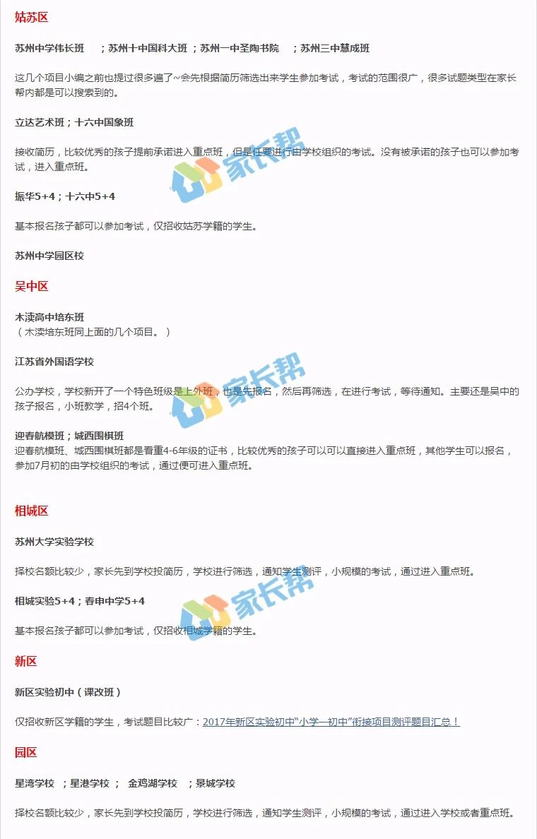 2018年苏州各区哪些初中需要考试择校
