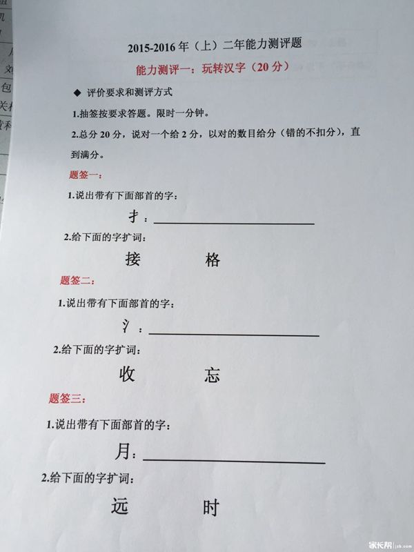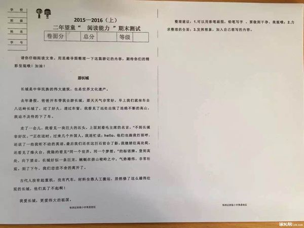 2015-2016学年沈阳铁西区二年级语文上册期末考试试卷