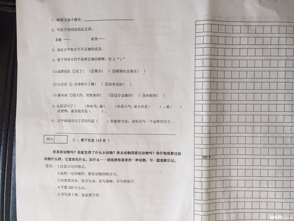 2016年沈阳皇姑区三年级语文上册期末试卷