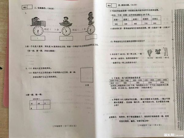 2016年沈阳皇姑区三年级数学上册期末试卷