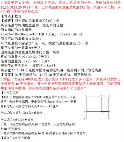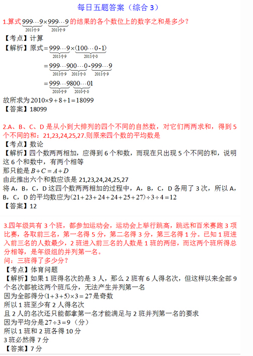 2016沈阳希望杯四年级综合类备考题(3)(2)