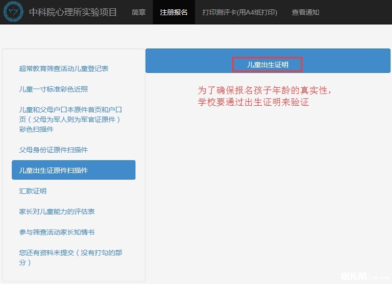 第九步:上传孩子出生证明扫描件,以确保孩子的年龄符合报名要求