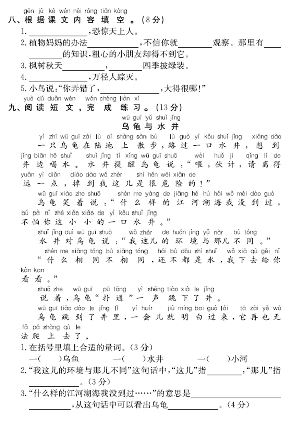 2019年沈阳小学二年级语文期末模拟试题(三)(3)