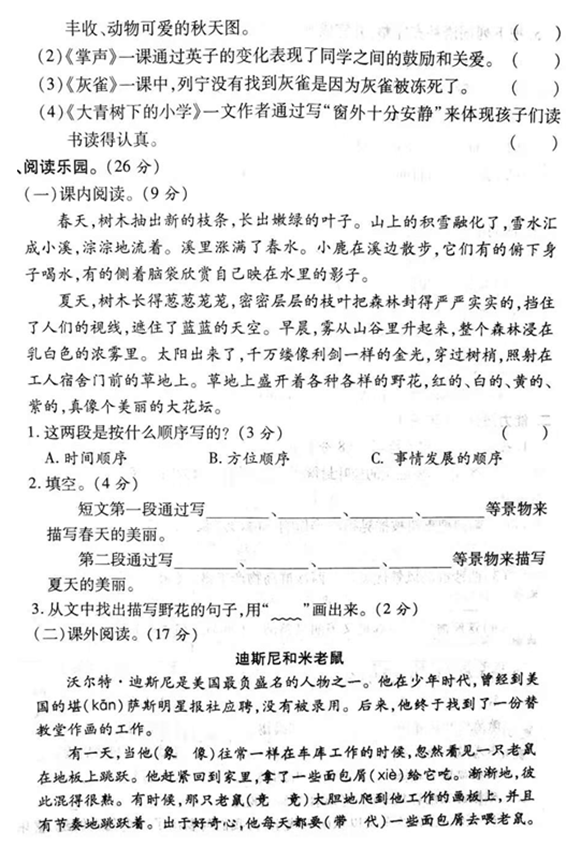 2019年沈阳小学三年级语文期末模拟试题(三)(3)