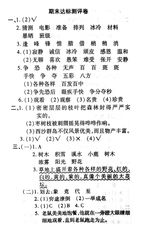 2019年沈阳小学三年级语文期末模拟试题(三)(5)