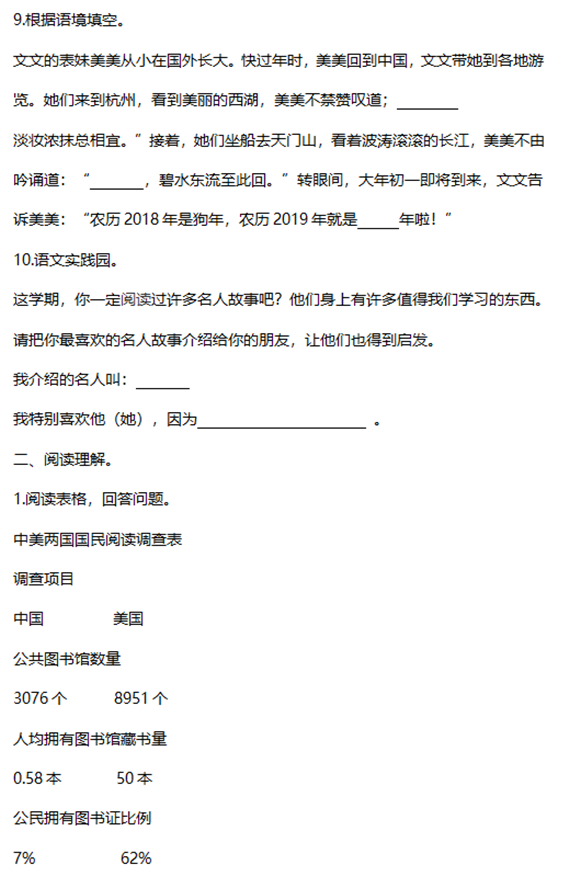 2019年沈阳小学三年级语文期末模拟试题(四)(3)