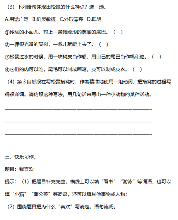 2019年沈阳小学三年级语文期末模拟试题(四)(6)