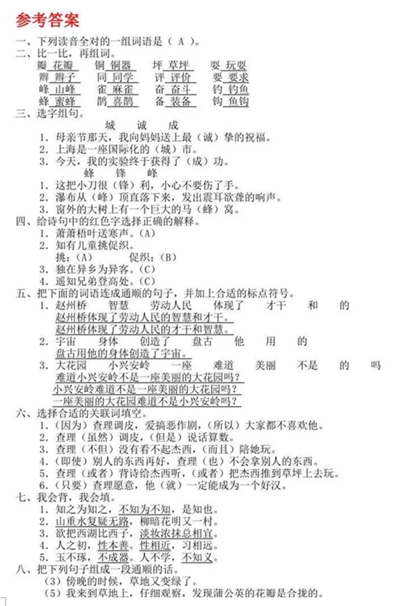 2019年沈阳小学三年级语文期末模拟试题(五)(5)