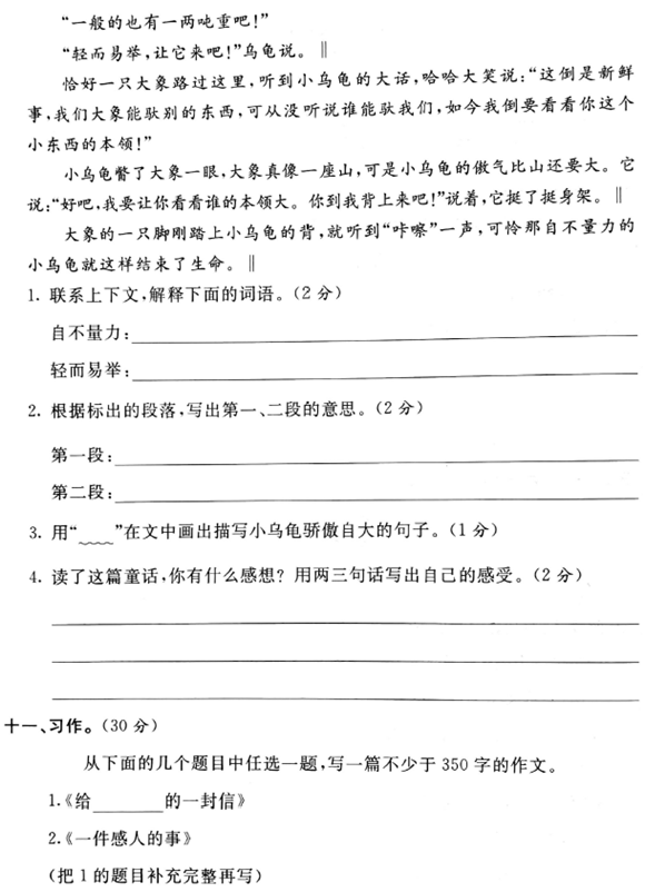 2019年沈阳小学四年级语文期末模拟试题(一)(4)