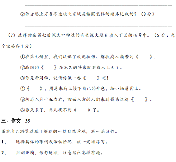 2019年沈阳小学四年级语文期末模拟试题(三)(4)