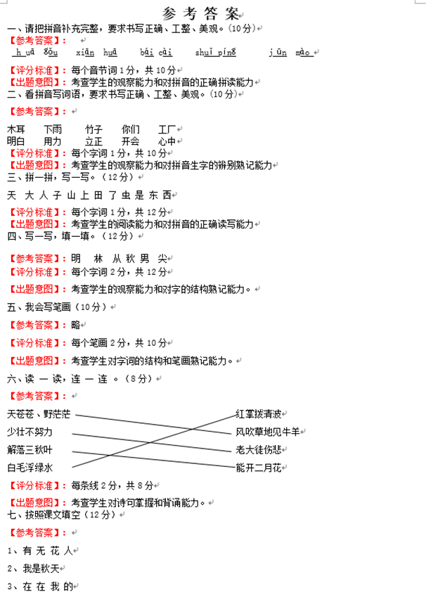 2019年沈阳市小学一年级语文期末模拟卷一(图片版)(3)