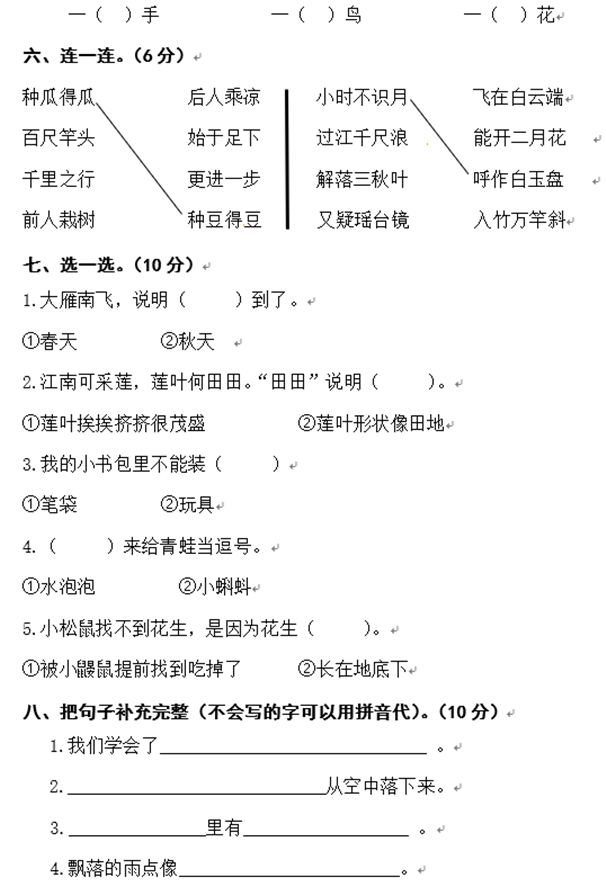 2019年沈阳市小学一年级语文期末模拟卷三(图片版)(3)