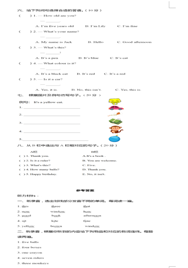 2019年沈阳市小学一年级英语期末模拟卷三(图片版)(2)