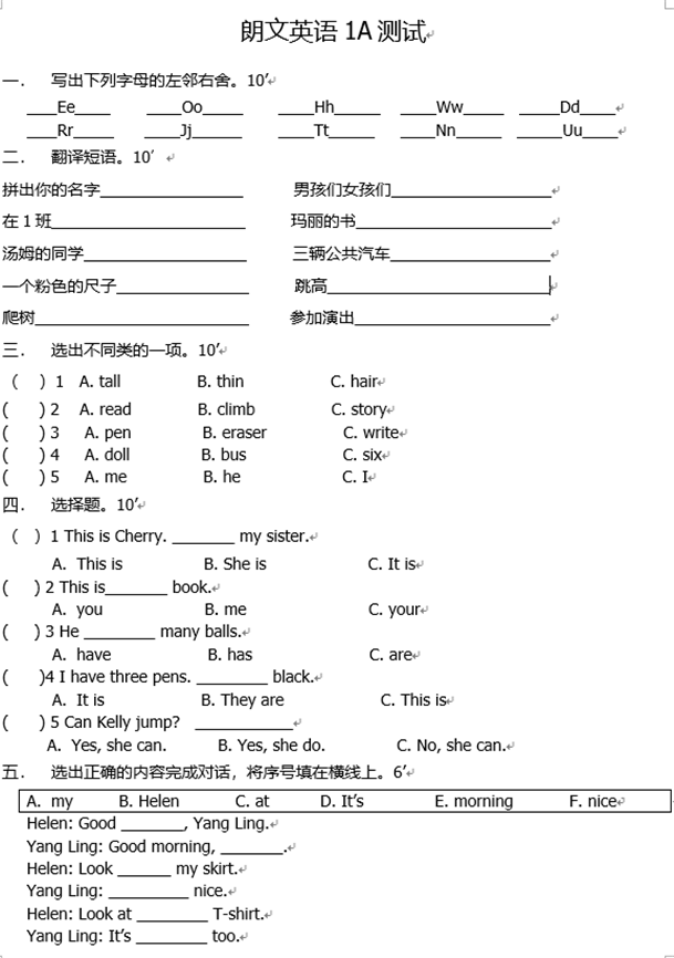 2019年沈阳市小学一年级英语期末模拟卷五(下载版) 网络资源 2019-01-14 13:55:46 2019年沈阳市小学一年级英语期末模拟卷五(下载版) 完整版链接:2019年沈阳市小学一年级英语期末模拟卷五(下载版)