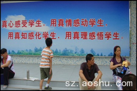 在这个炎热的夏日上午,孩子们在里面考,家长们则在外面“烤”啊。虽然校方为家长们安排了较为宽敞的休息的地方,但仍然有部分家长担心地守在门口,舍不得离去,时不时地回头看看教学楼门口,心中期盼着孩子能考得顺利。小编在与家长的聊天中获悉,参加今天深中考试的途径有三个:1、参加了5月7日福景本校的入学考试被录取为福景本校的深中实验班的;2、参加了誉天创新思维培训班的;3、直接到深中递交了简历的。