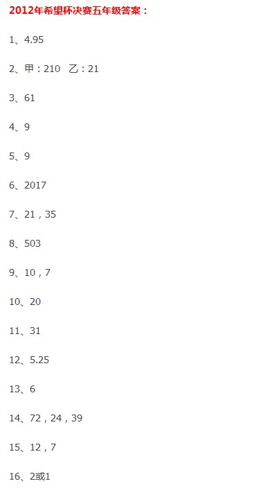2012年希望杯决赛各年级试题及答案详解汇总(5)