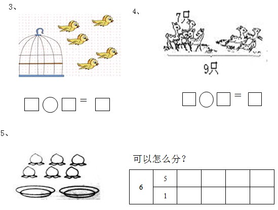 4+( )=8 6-( )=1 ( )-2=5 3+4<( )